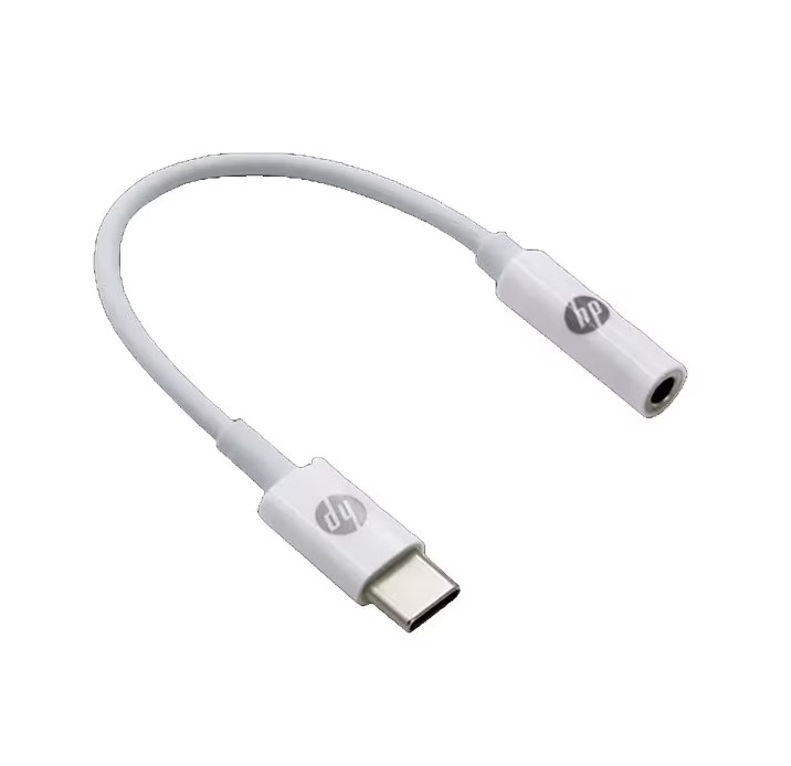 El adaptador HP DHC-TC130 blanco permite conectar audífonos o parlantes tradicionales con conector 3.5 mm a dispositivos modernos con puerto USB-C. Ideal para usuarios que requieren compatibilidad entre equipos antiguos y actuales, con un diseño ligero y portátil perfecto para uso diario.