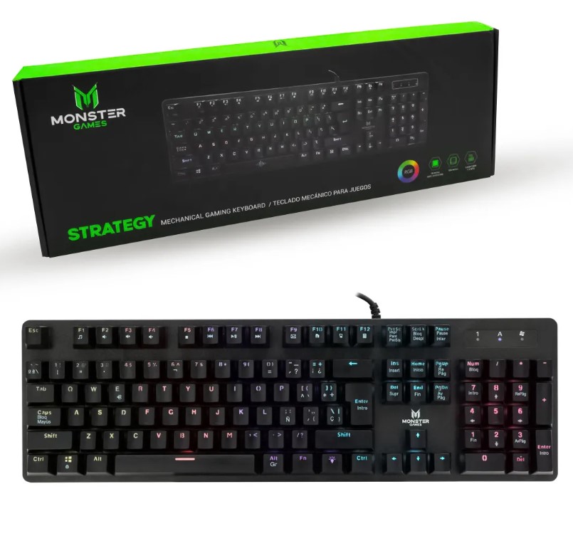El teclado Monster Strategy T3118 es un periférico gamer diseñado para máxima precisión y durabilidad. Equipado con switches mecánicos, ofrece respuesta rápida en cada pulsación, ideal para juegos competitivos. Su retroiluminación RGB ajustable y teclas multimedia integradas permiten personalización y control total. Con estructura robusta, es perfecto para jugadores que buscan un teclado confiable y atractivo.