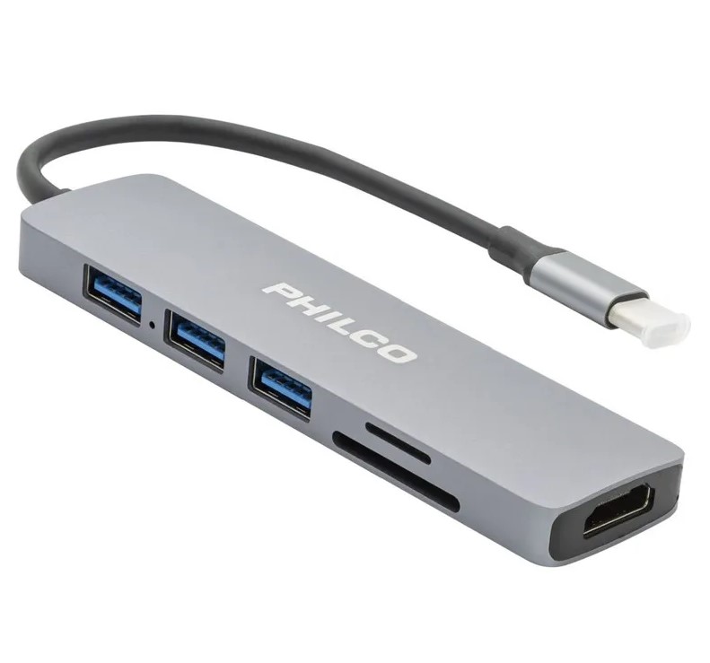 El Philco 6 en 1 es un hub multipuertos diseñado para quienes necesitan máxima productividad y portabilidad. Permite conectar varios dispositivos a la vez, incluyendo monitores externos, memorias USB y tarjetas SD. Su diseño metálico asegura resistencia y estilo, convirtiéndolo en un accesorio indispensable para profesionales, estudiantes y viajeros.