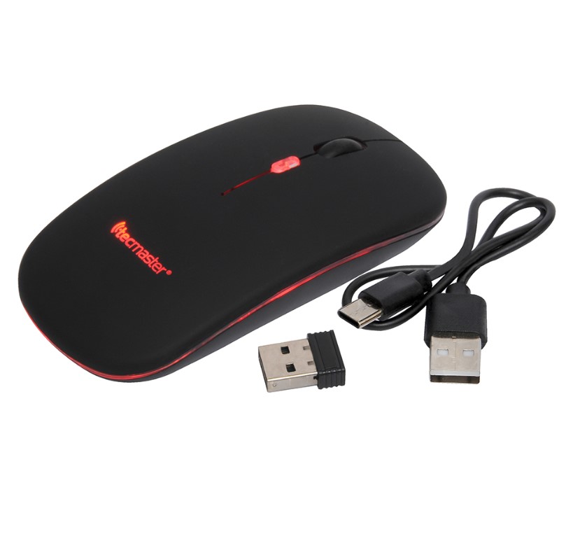 Tecmaster Slim Mouse Dual Inalámbrico Y Bt V5.0 Recargable Tipo C Negro